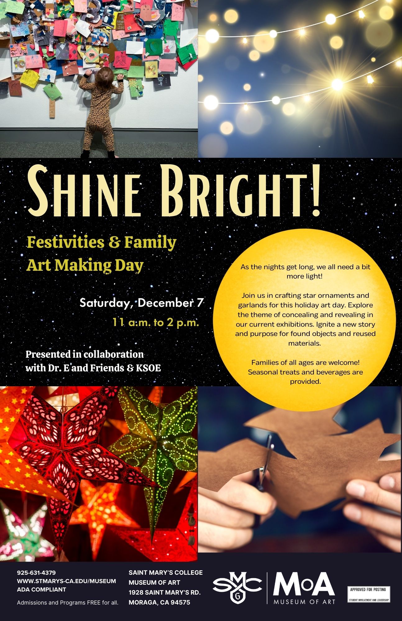 As the nights get long, we all need a bit more light! Join us in crafting star ornaments and garlands for this holiday-themed art day. Explore the theme of concealing and revealing in our current exhibitions. Ignite a new story and purpose for found objects and reused materials. Families of all ages are welcome!