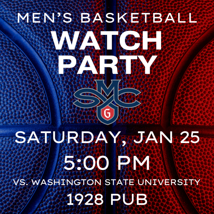 Cheer on the Gaels as they take on Washington State University! Head over to the newly renovated 1928 Pub and catch the action on the big screen. Enjoy snacks, good vibes, and great company while rooting for SMC. Don't miss the chance to check out the Pub's fresh new look! Let’s Go Gaels!
