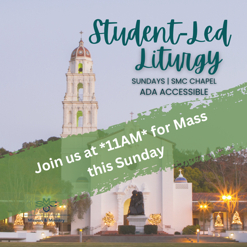 Join us this Sunday morning at 11am for a special Student–Led Liturgy for Parent and Family Weekend. If you would like to be involved in liturgy, please reach out to Fr. Kwame, bka3@stmarys-ca.edu.
