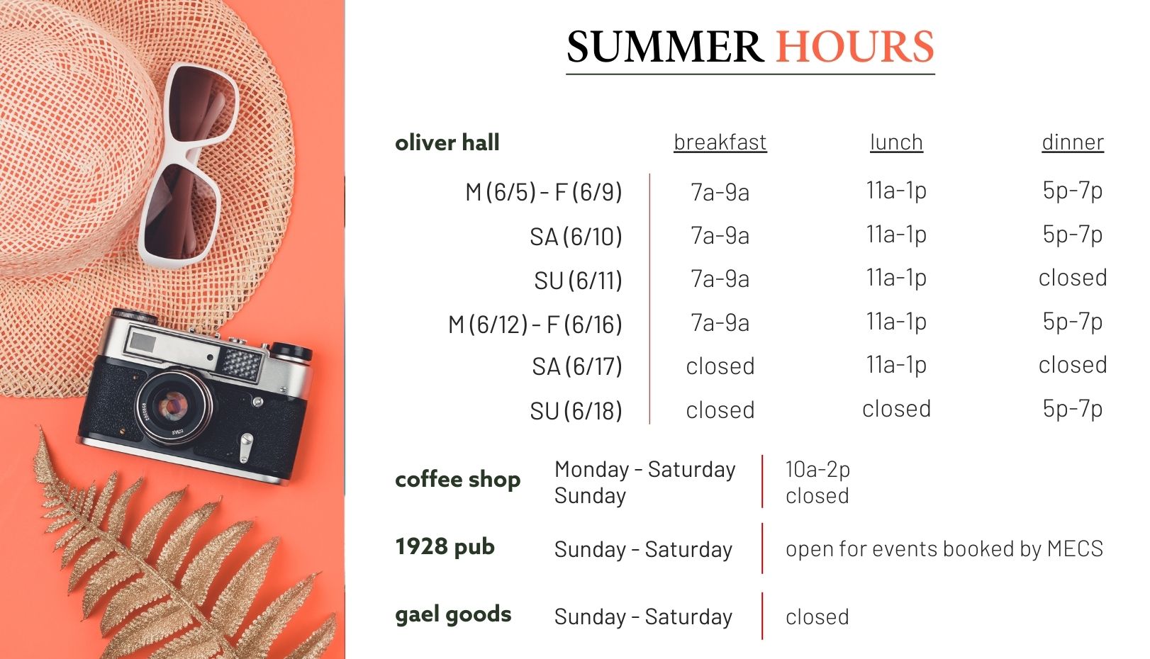 Gael Dining Shares Summer Hours of Operation for Dining on Campus