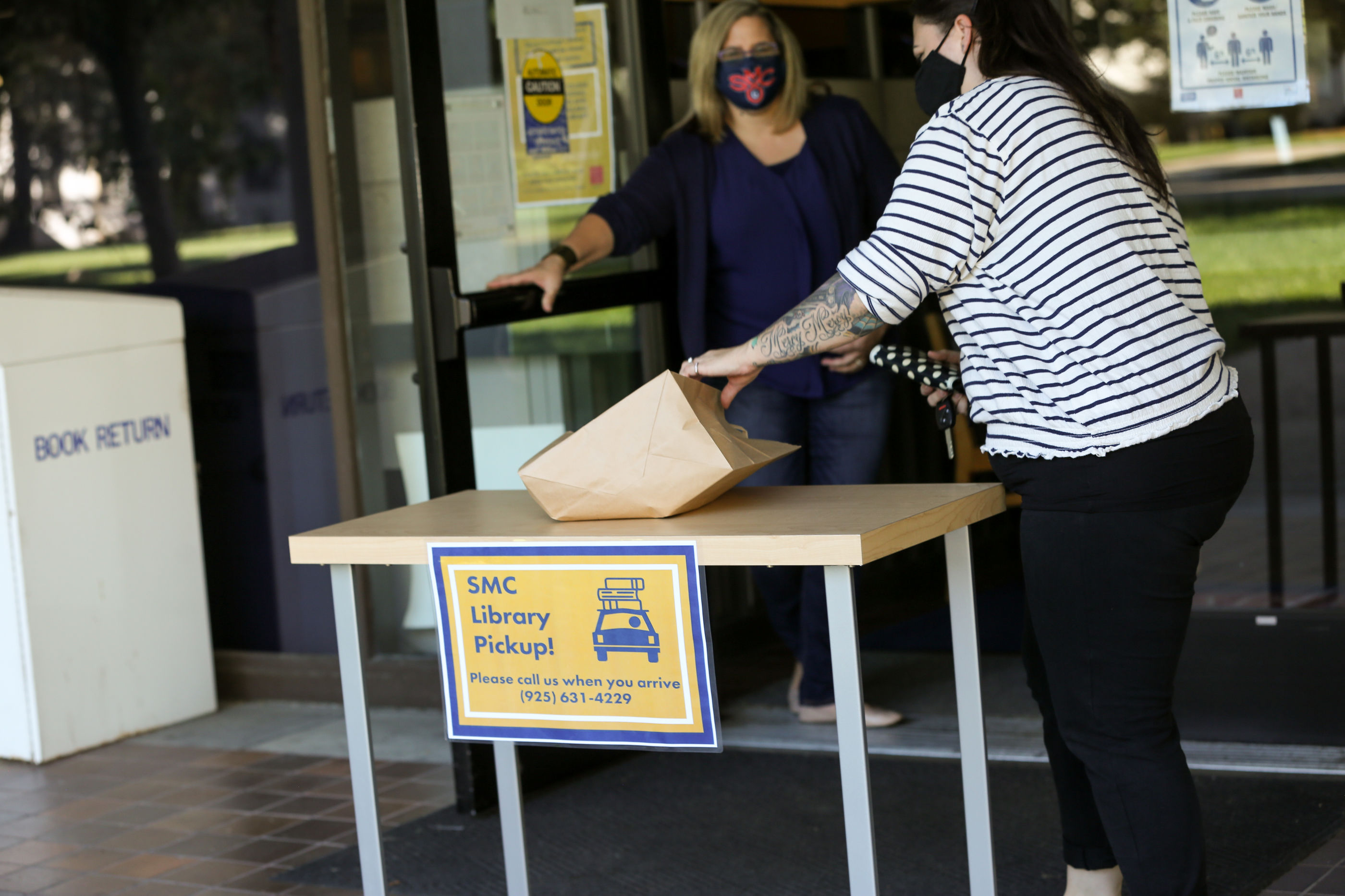 Make an appointment for pickup through the SMC Library Pickup form. Pickups are available Mondays 10 am - 12 pm and Thursdays 4-6 pm, curbside or walk-up, for faculty, staff, on-campus students, and off-campus students.