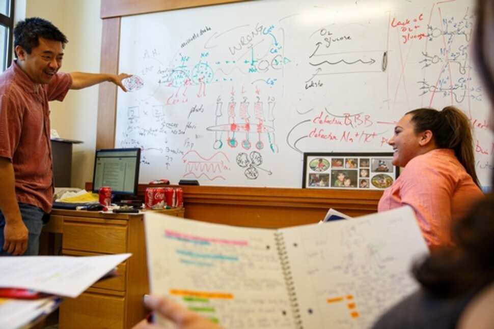 Professors who know you by name: A Saint Mary's College faculty member works with students during office hours. / Photo by Steve Babuljak