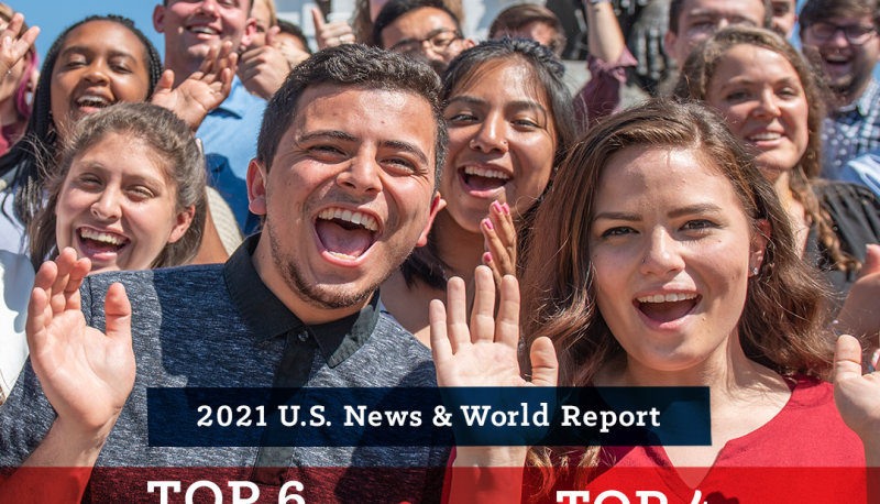 Saint Mary’s is honored to announce its number sixth-ranked position by U.S. News and World Report in the Best Regional Universities-West category for 2021. This accolade is solid validation that the College continues to be acknowledged as a leading institution of higher education: delivering commanding results and transforming the lives of our students. The distinctions that are lauded upon Saint Mary’s are for excellence in several qualitative and quantitative categories, including: academics, faculty, affordability, financial aid, campus life, graduation rates, career outcomes, and more.