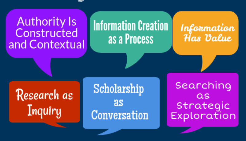 Come learn about the new Framework for Information Literacy for Higher Education (Association of College and Research Libraries, 2015) and discuss ideas like how authority can be constructed and contextual, that information has value, and in what ways scholarship is a conversation.